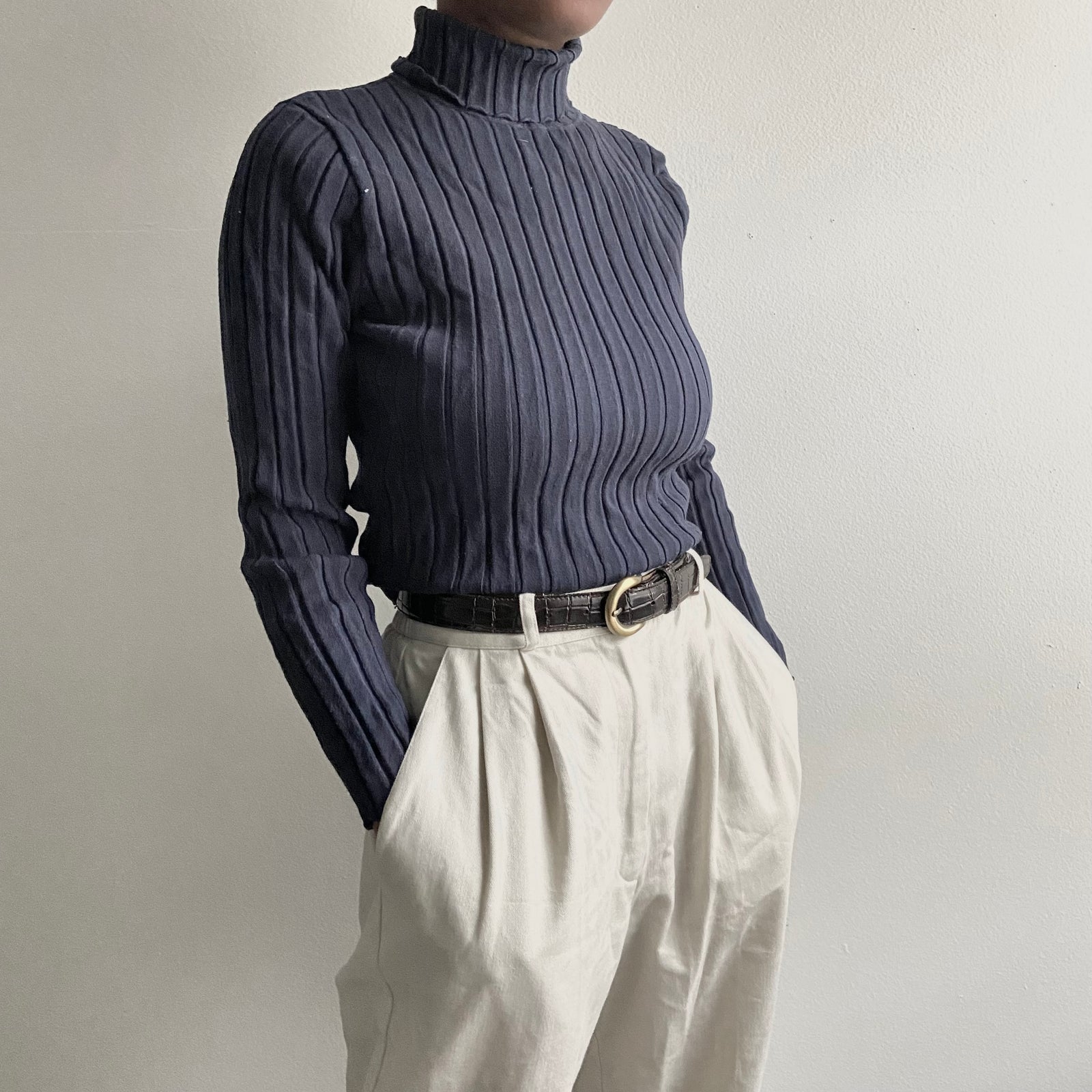 VAIGE One of One | Blue Ribbed Turtleneck Sweater