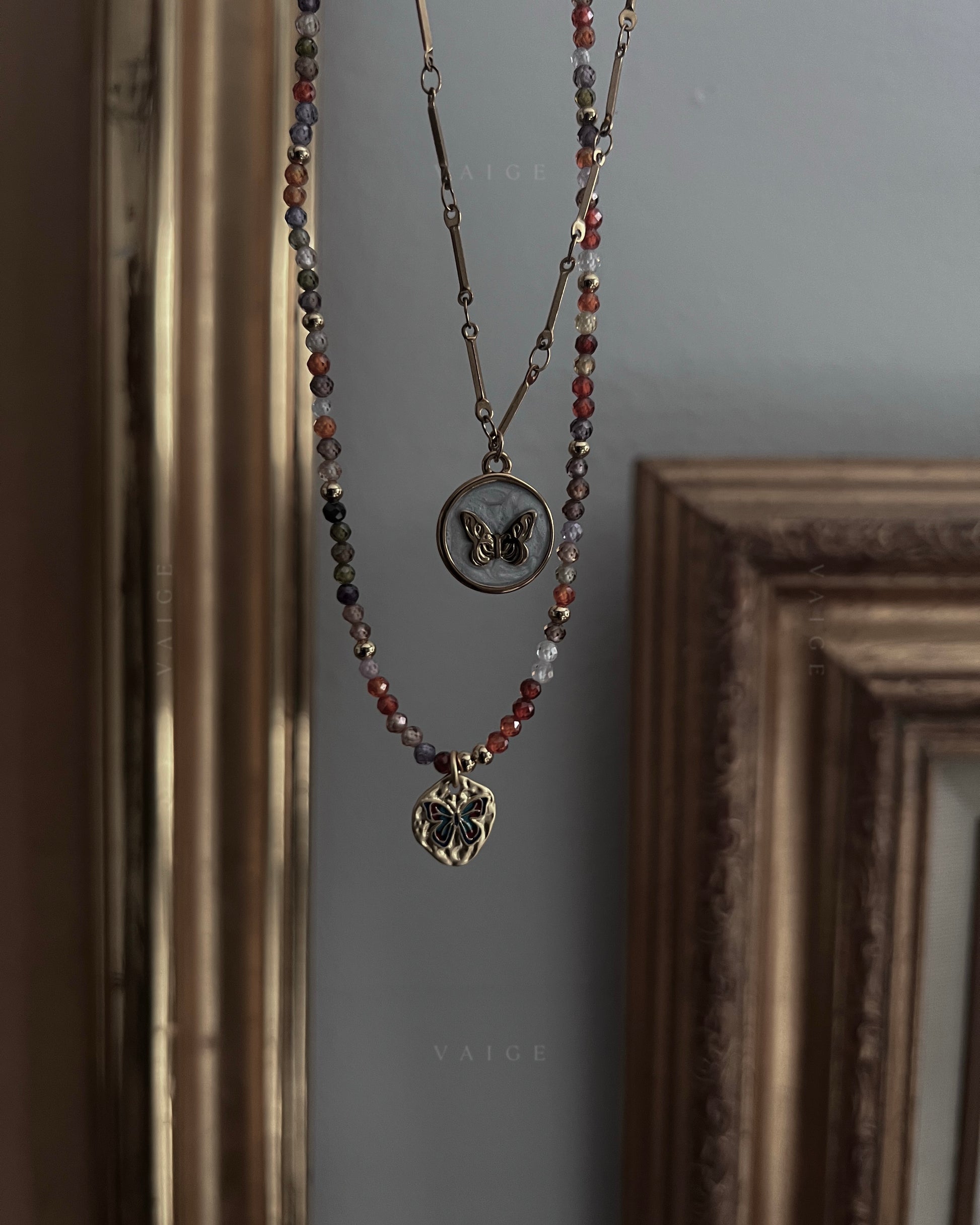 Colorful butterfly pendant necklace crafted from gold-plated stainless steel with hand-applied enamel details. This vibrant piece captures nature's beauty in a wearable design that works beautifully on its own or layered with other necklaces. Durable construction ensures your butterfly charm stays bright and stunning season after season.