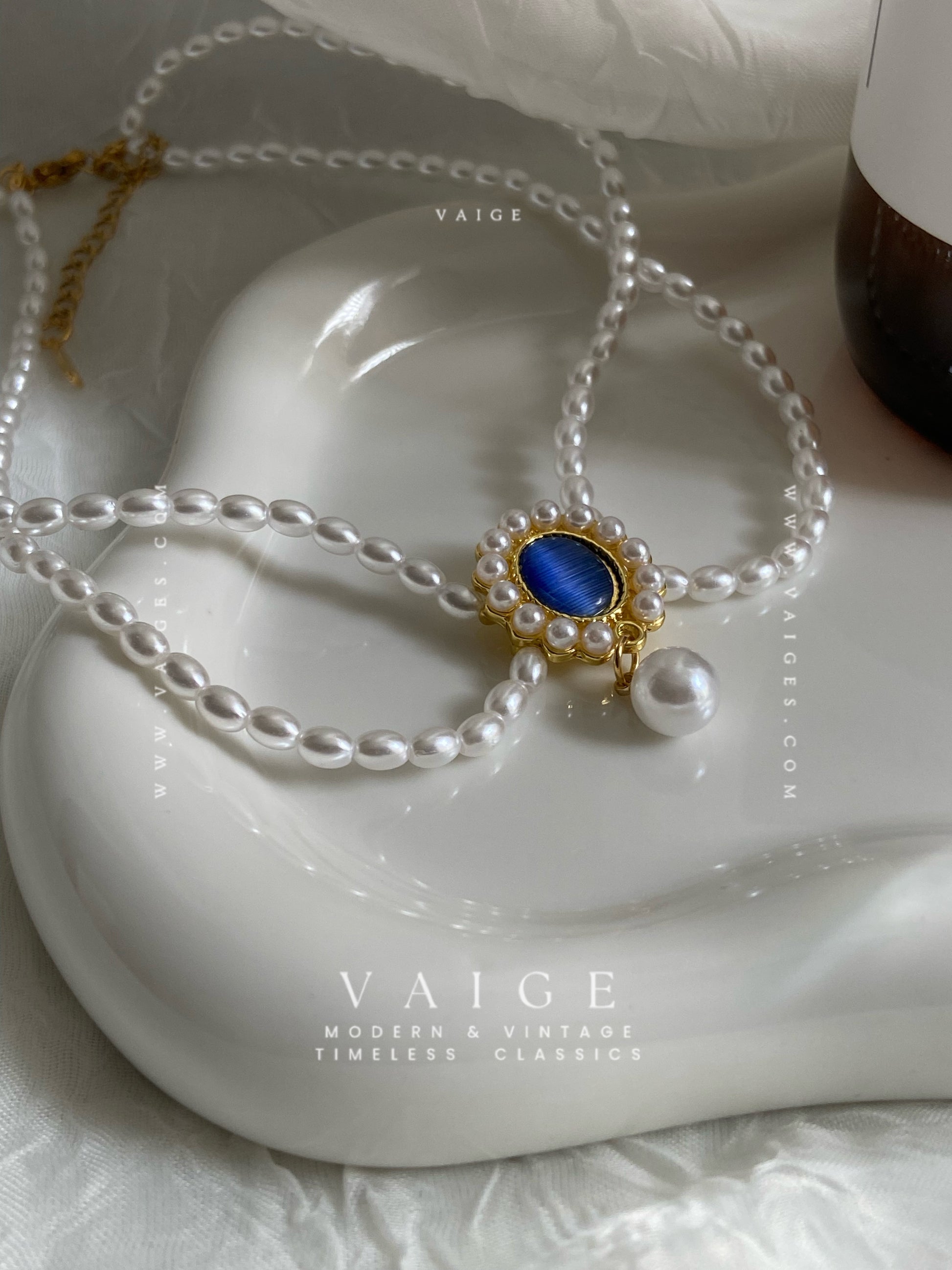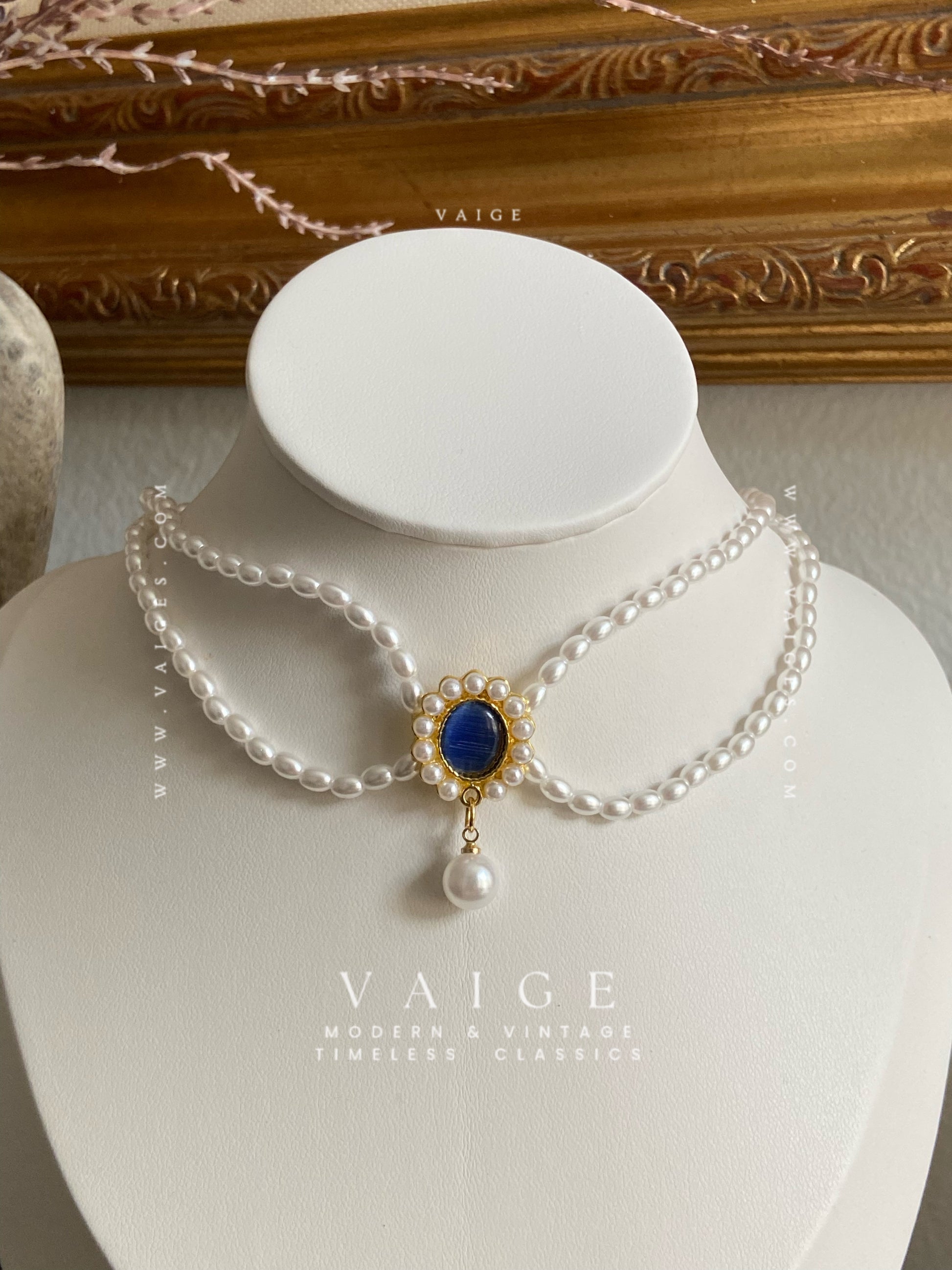 VAIGE Alloy Double Layer Design Opal Pearl Choker Necklace