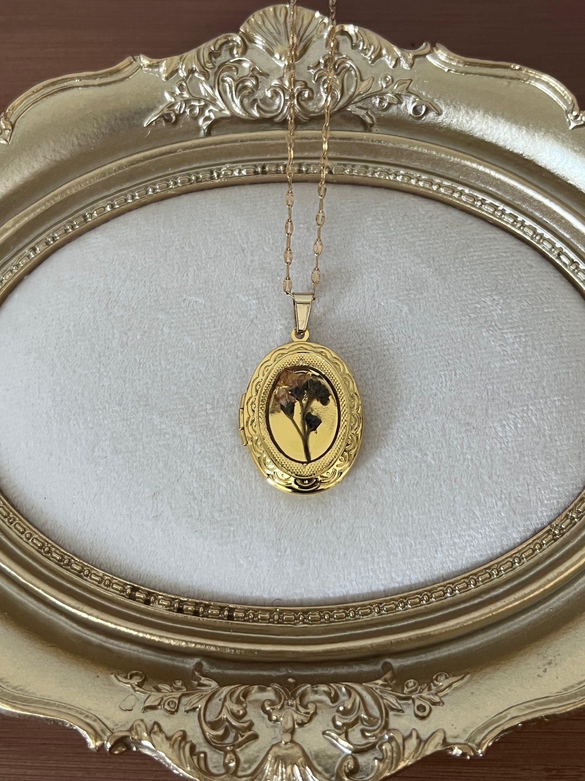 Dried flower locket necklace