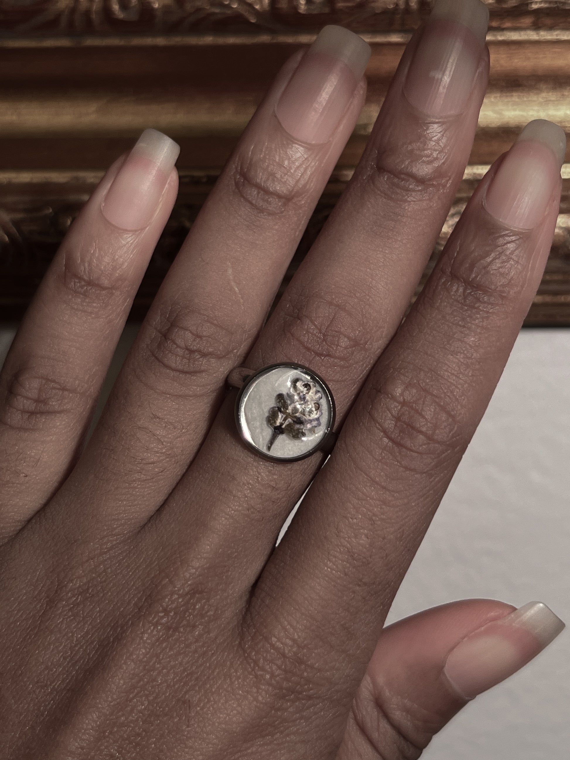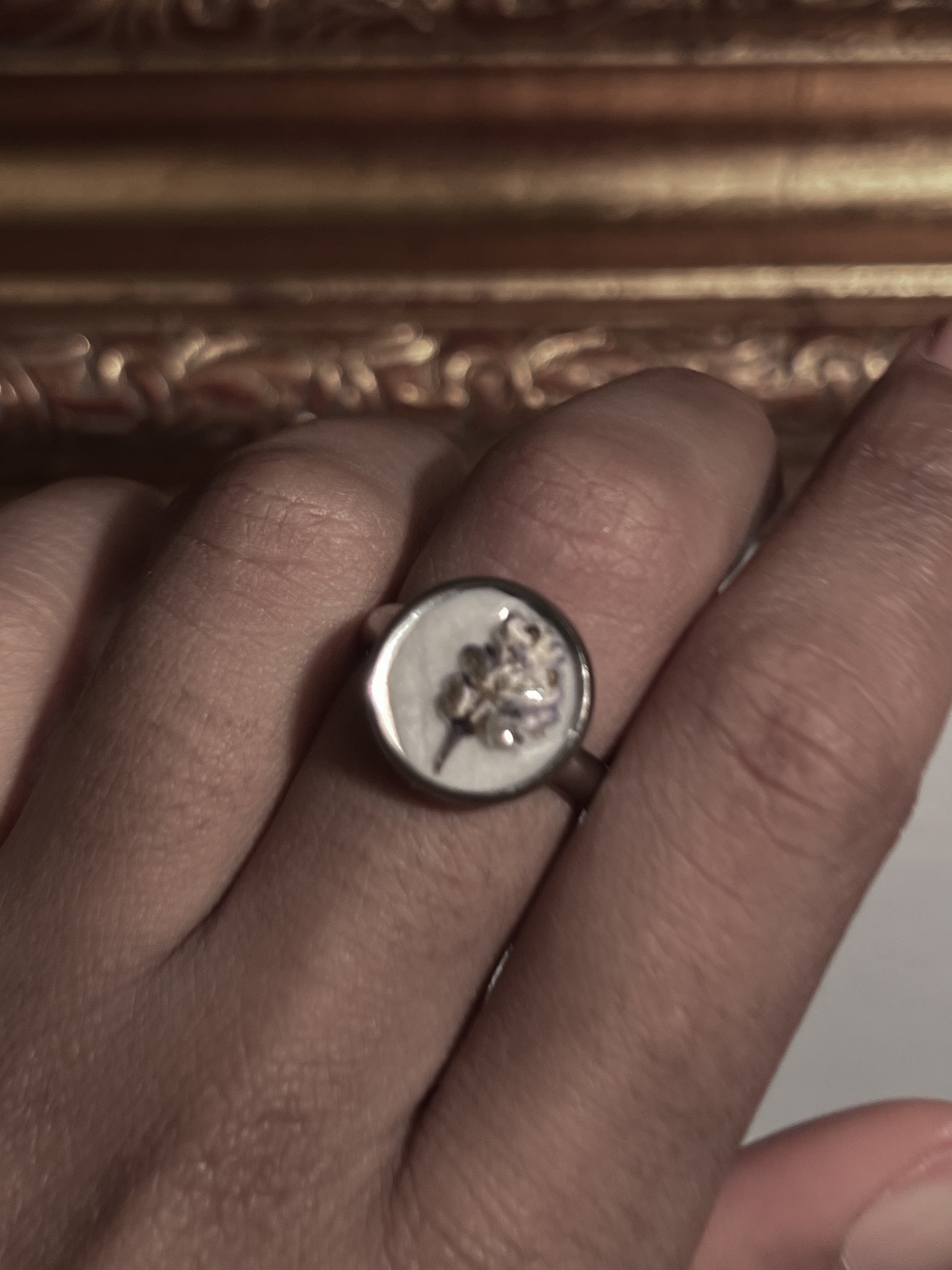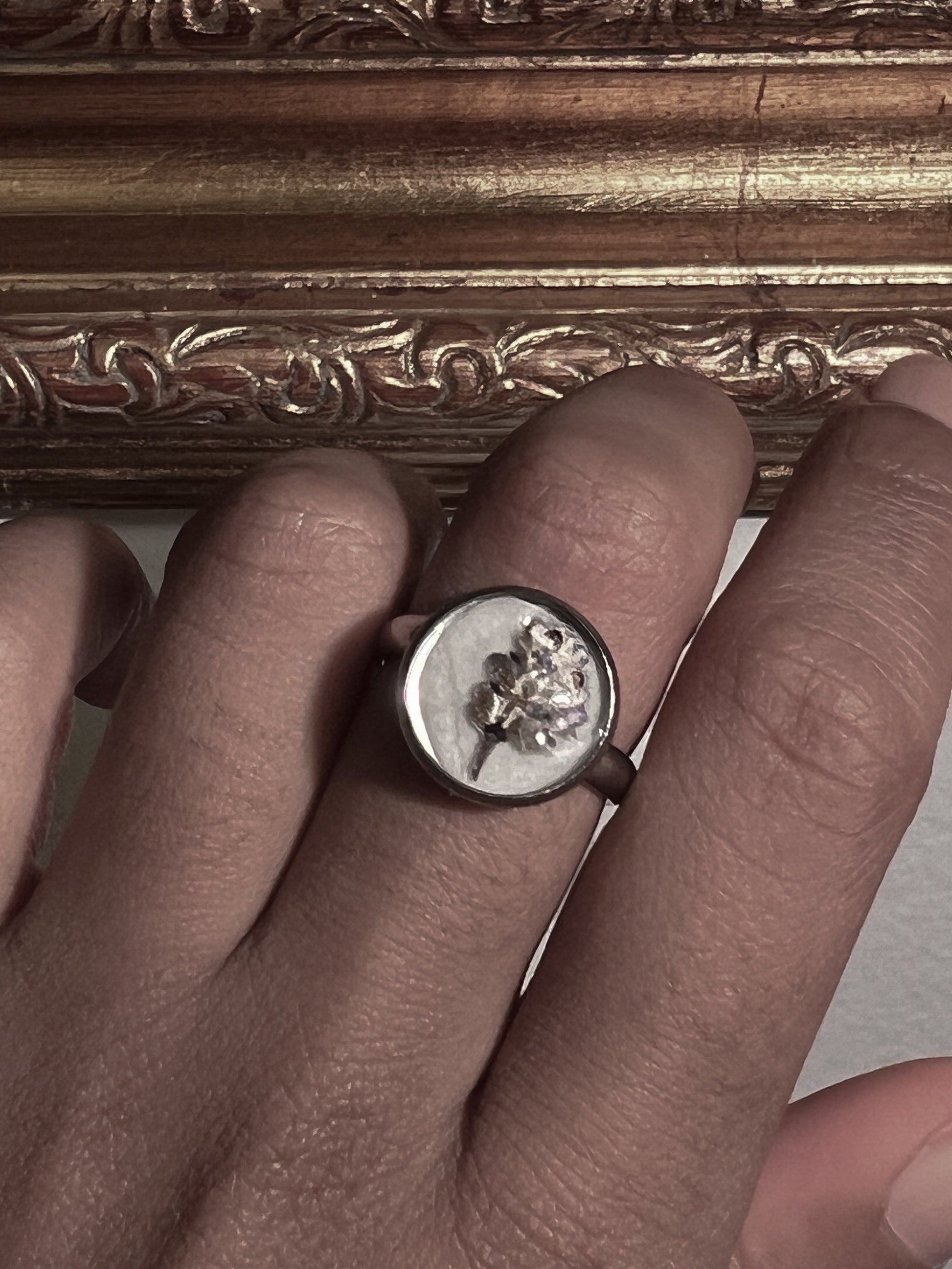VAIGE Imperfect! Silver dried flower adjustable ring