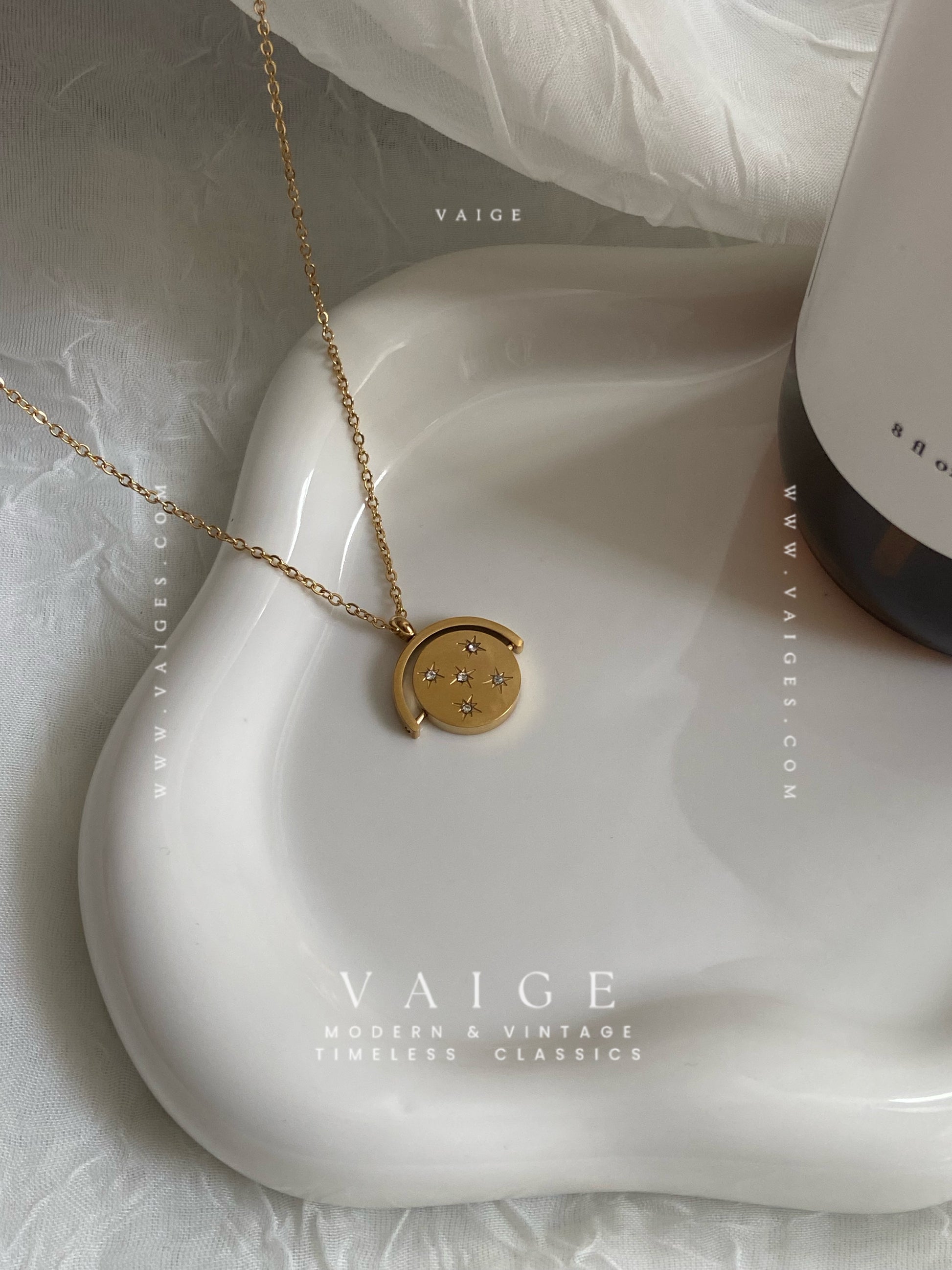 VAIGE Rotatable Star Charm 18K Gold Plated Stainless Steel Necklace