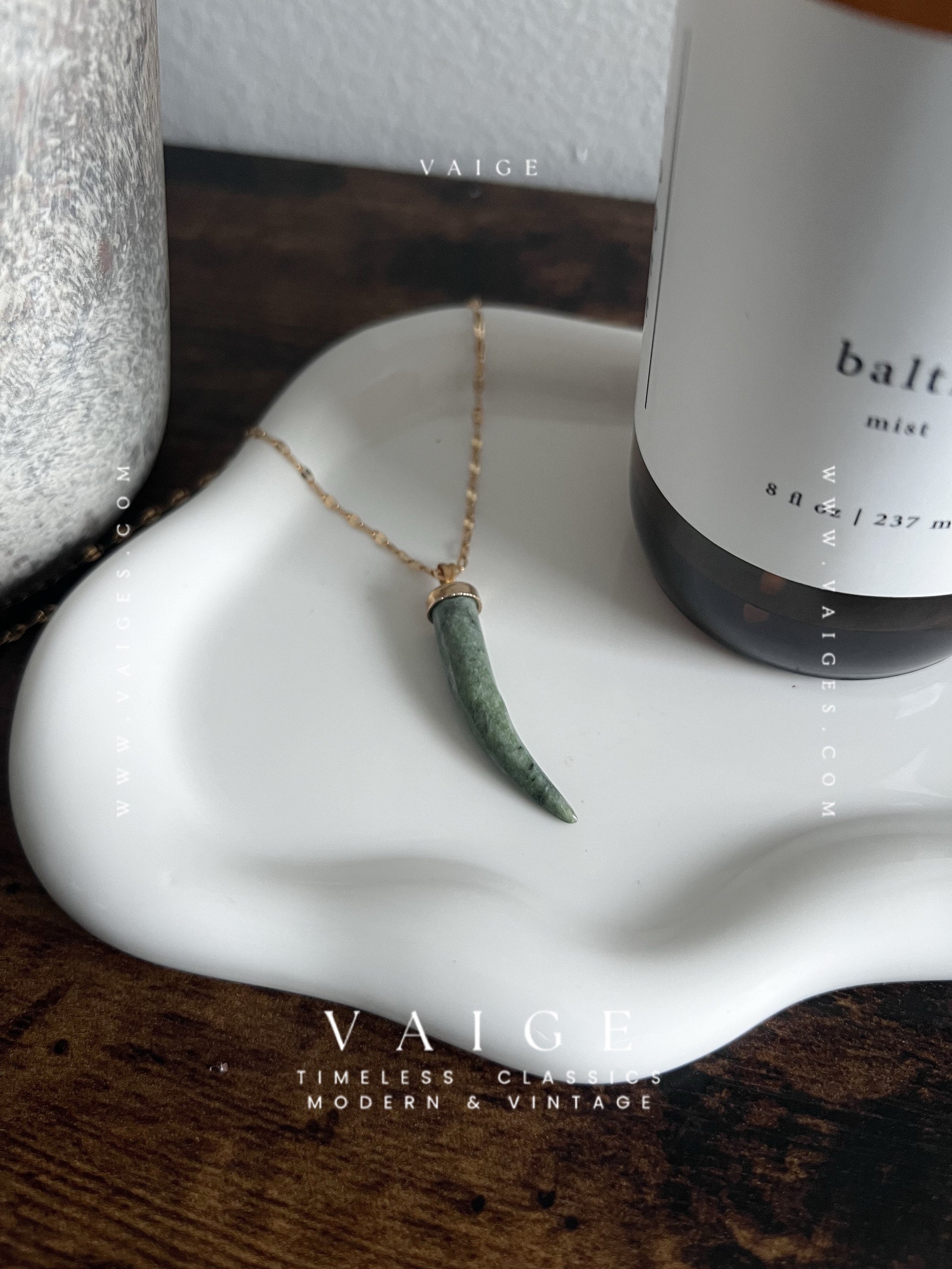VAIGE One of One |Gold Green Stone Jade Horn / Tooth / Pepper Necklace
