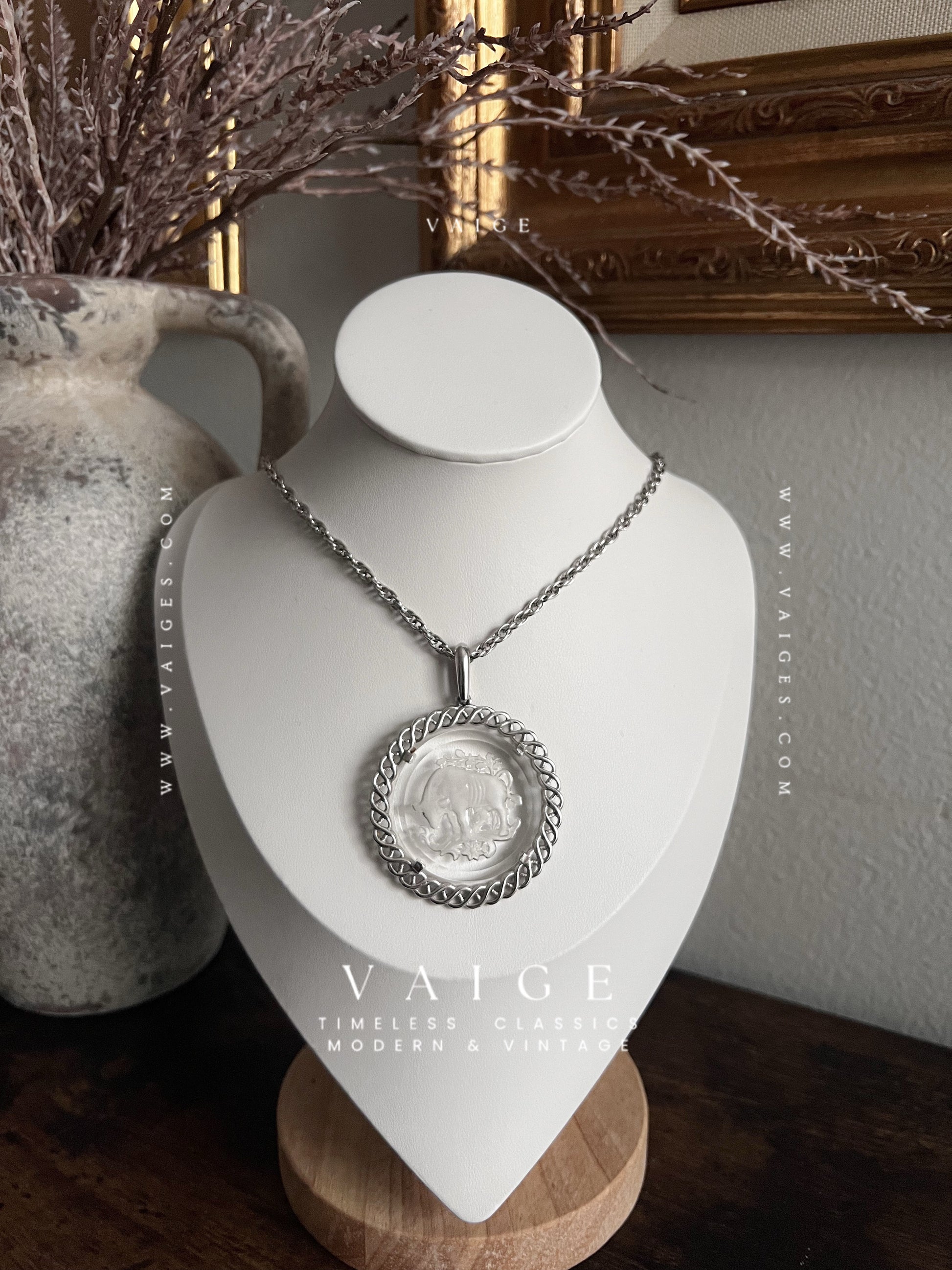 VAIGE One Of One | Vintage Circle Coin Silver Zodiac Necklace Taurus Glass Engraved