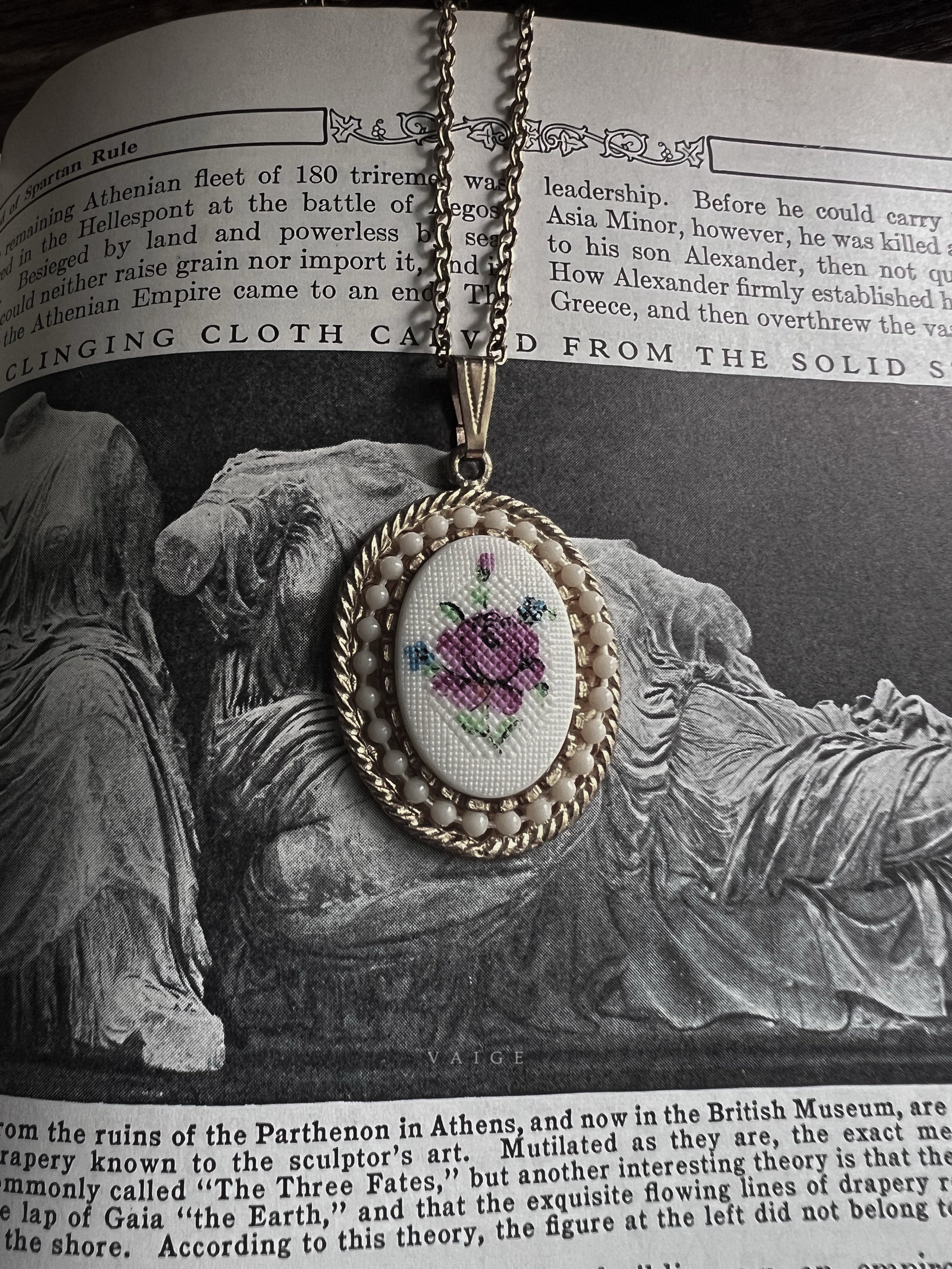 VAIGE One of One | Vintage Purple Flower White Bead Gold Necklace