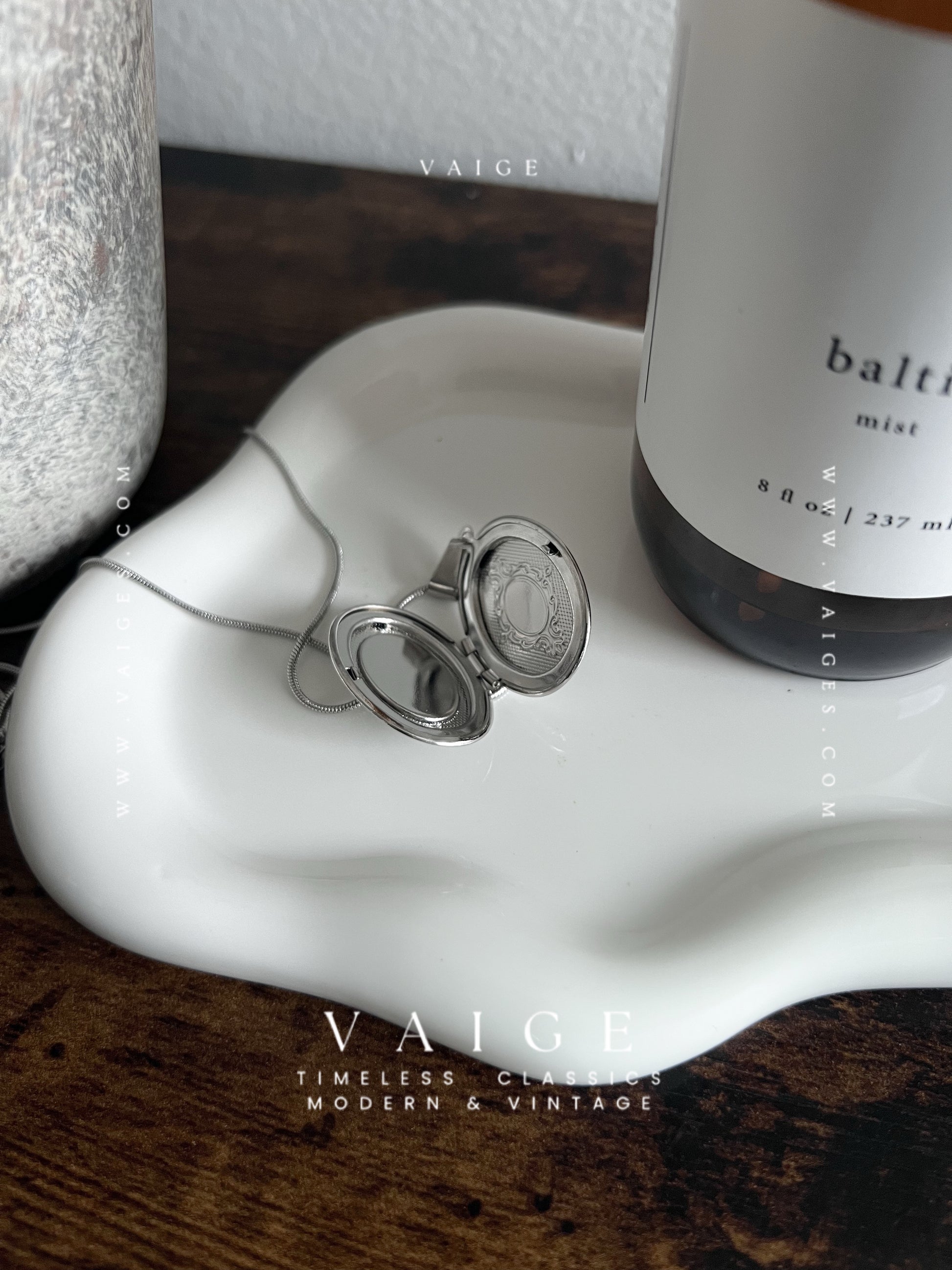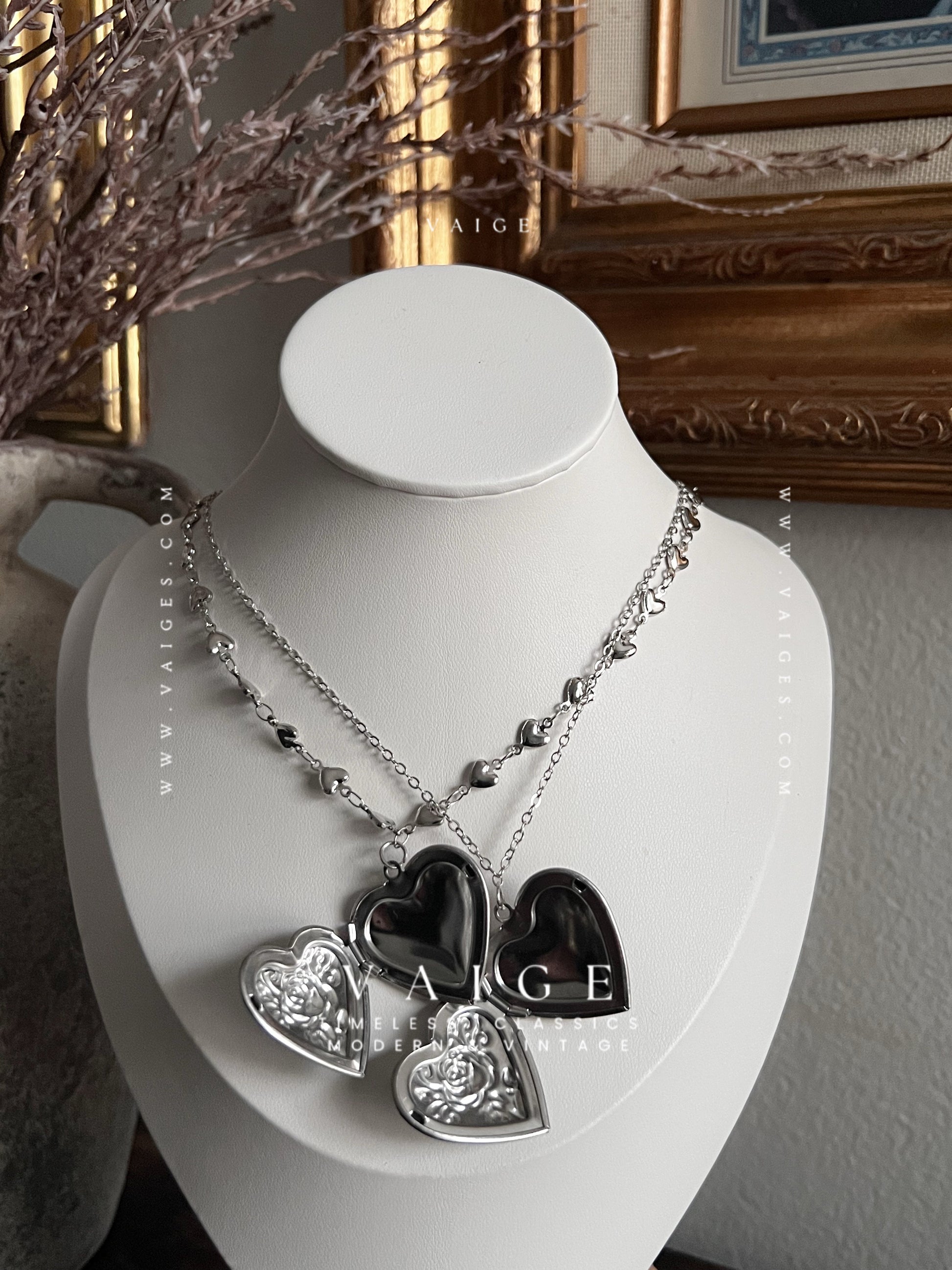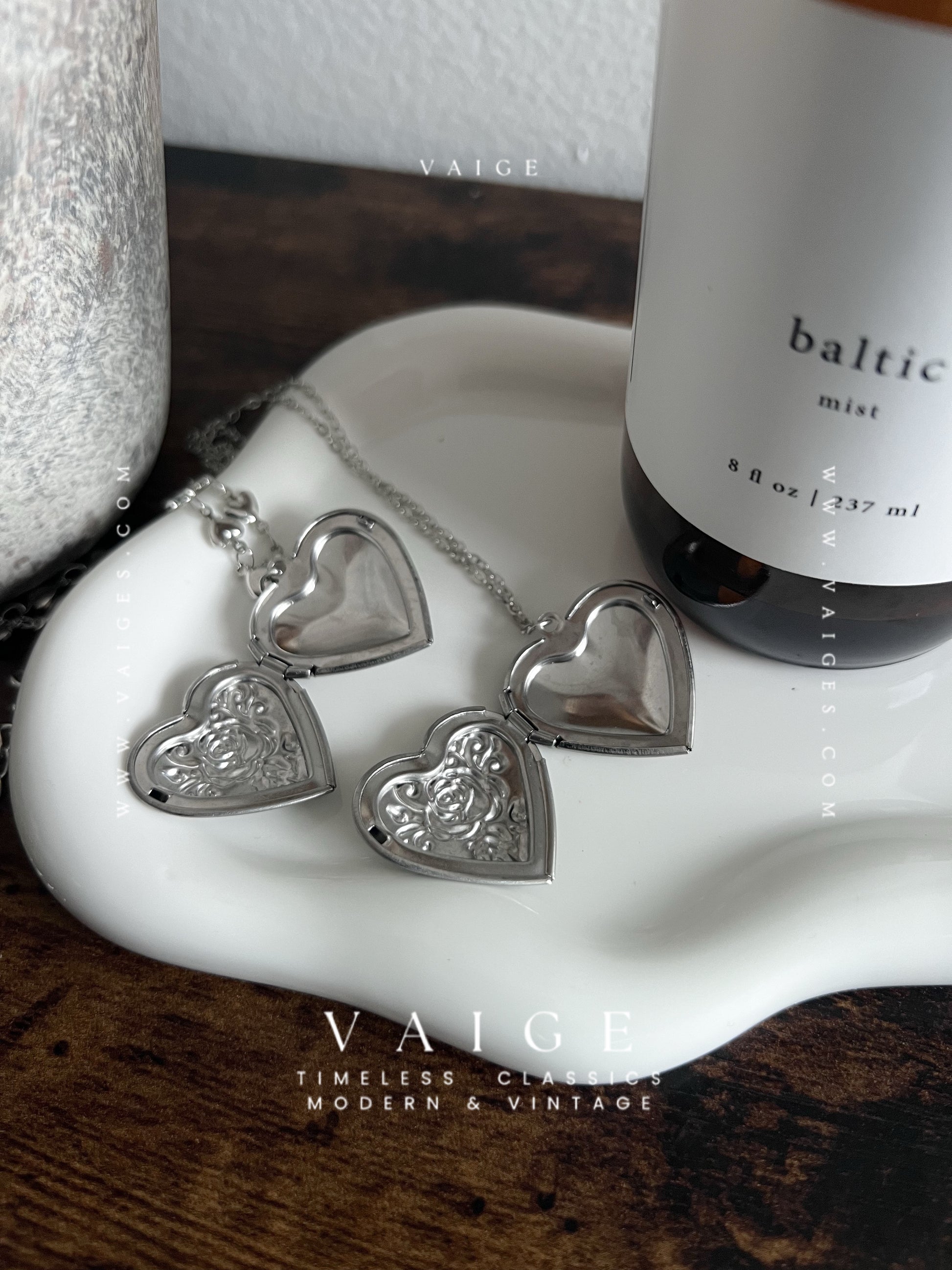 VAIGE Romantic Heart Locket Pendant Locket Silver Stainless Steel Necklace