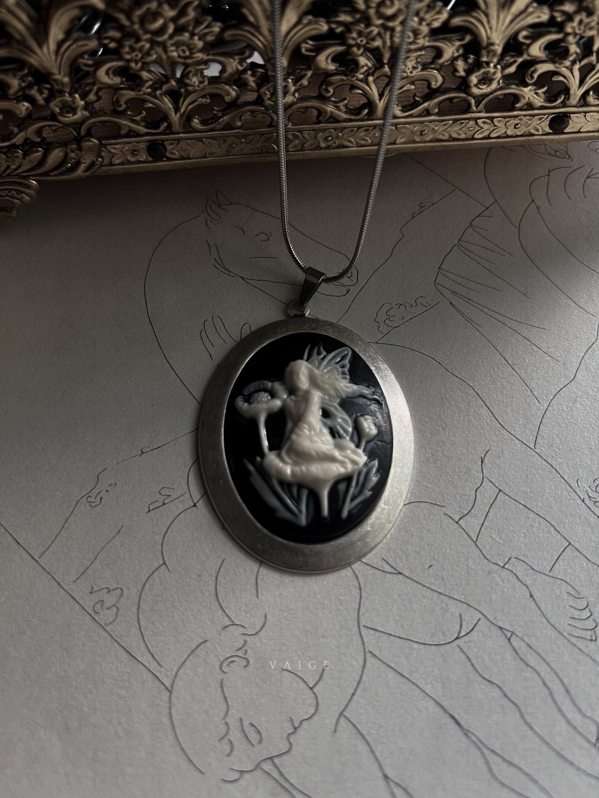 VAIGE Fairy on Flower Cameo Silver Necklace